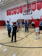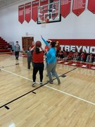 The day started with basketball players participating in dribbling, shooting, and passing competitions while the cheerleaders worked on skills and learned cheers. Special Olympics athletes and Treynor athletes then combined to form teams for four-on-four basketball games. While the players competed, the cheerleaders cheered for the teams. Lunch was provided by Treynor Community Schools Board of Education.