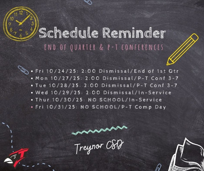 With the end of the quarter and parent-teacher conferences, there are some schedule changes coming up: